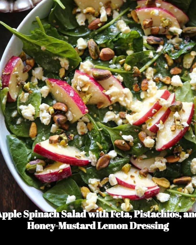 Delight in Every Bite: Apple Spinach Salad with Feta, Pistachios, and Honey-Mustard Lemon Dressing